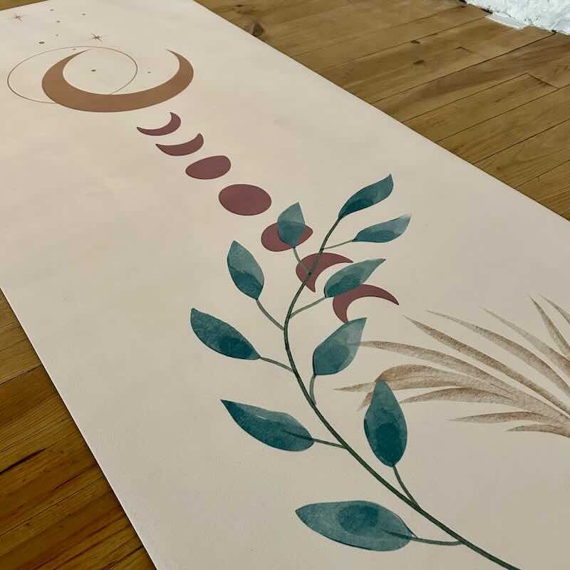 Le tapis de yoga Performance Clair de Lune incarne l’élégance et la sérénité avec son fond beige épuré, rehaussé par un motif lunaire raffiné accompagné de feuillages délicats. L’alignement des phases de la lune évoque le cycle du renouveau, tandis que les nuances naturelles des feuilles apportent une touche de douceur et de connexion à la nature. Ce design harmonieux crée un espace propice à la méditation, à l’ancrage et à la fluidité des mouvements.