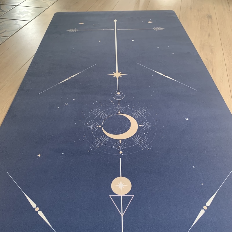 Le tapis de yoga Performance Cosmos Bleu évoque la profondeur et l’immensité de l’univers. Son bleu nuit intense, parsemé d’étoiles délicates, crée une atmosphère céleste propice à la concentration et à l’introspection. Le design est structuré autour d’une lune dorée rayonnante, entourée de symboles cosmiques et de flèches directionnelles, inspirant équilibre et guidance dans la pratique. Ce tapis est un véritable support visuel pour cultiver l’ancrage et la fluidité des mouvements, tout en insufflant une énergie mystique à chaque séance.