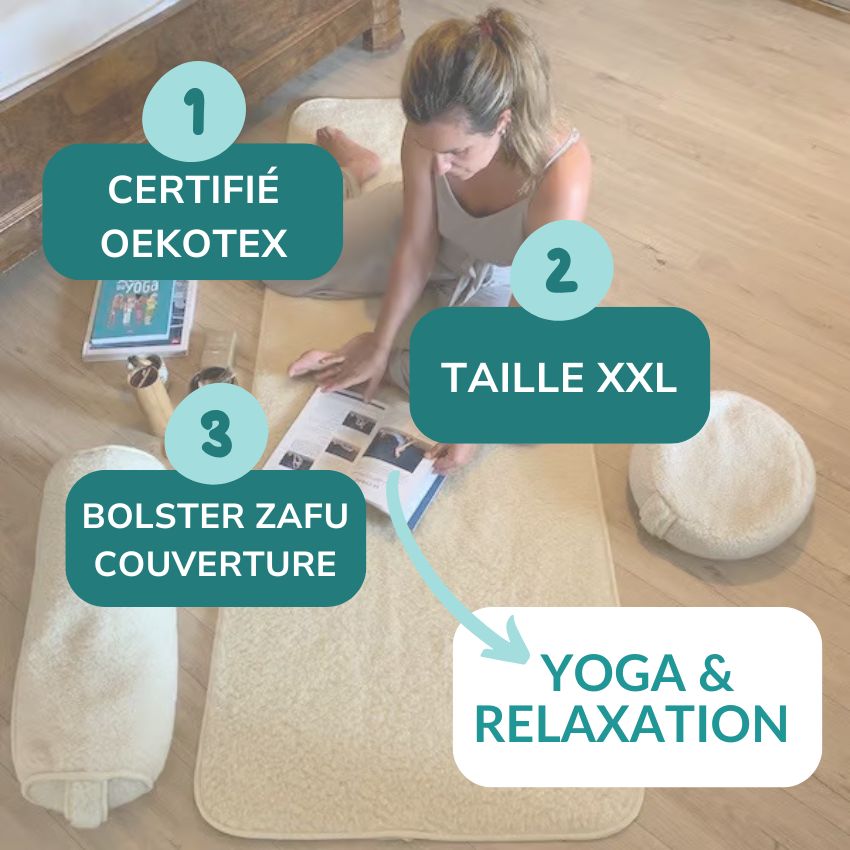- Alternative à la brique de yoga ou au bolster yoga (vous pouvez reposer votre tête sur nos zafus en position de relaxation, ou placer le coussin en bas de votre dos allongé dessus pour détendre les lombaires et le psoas).